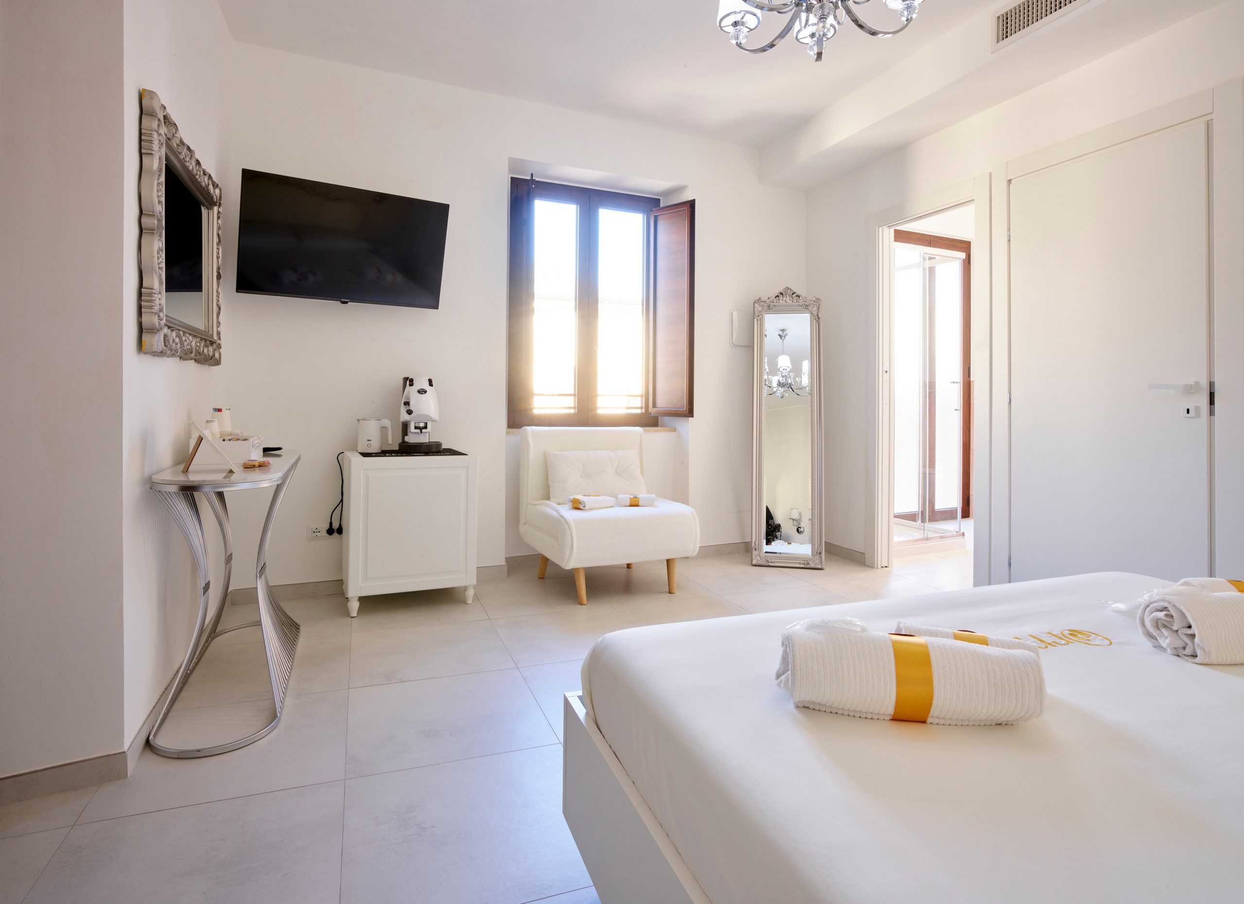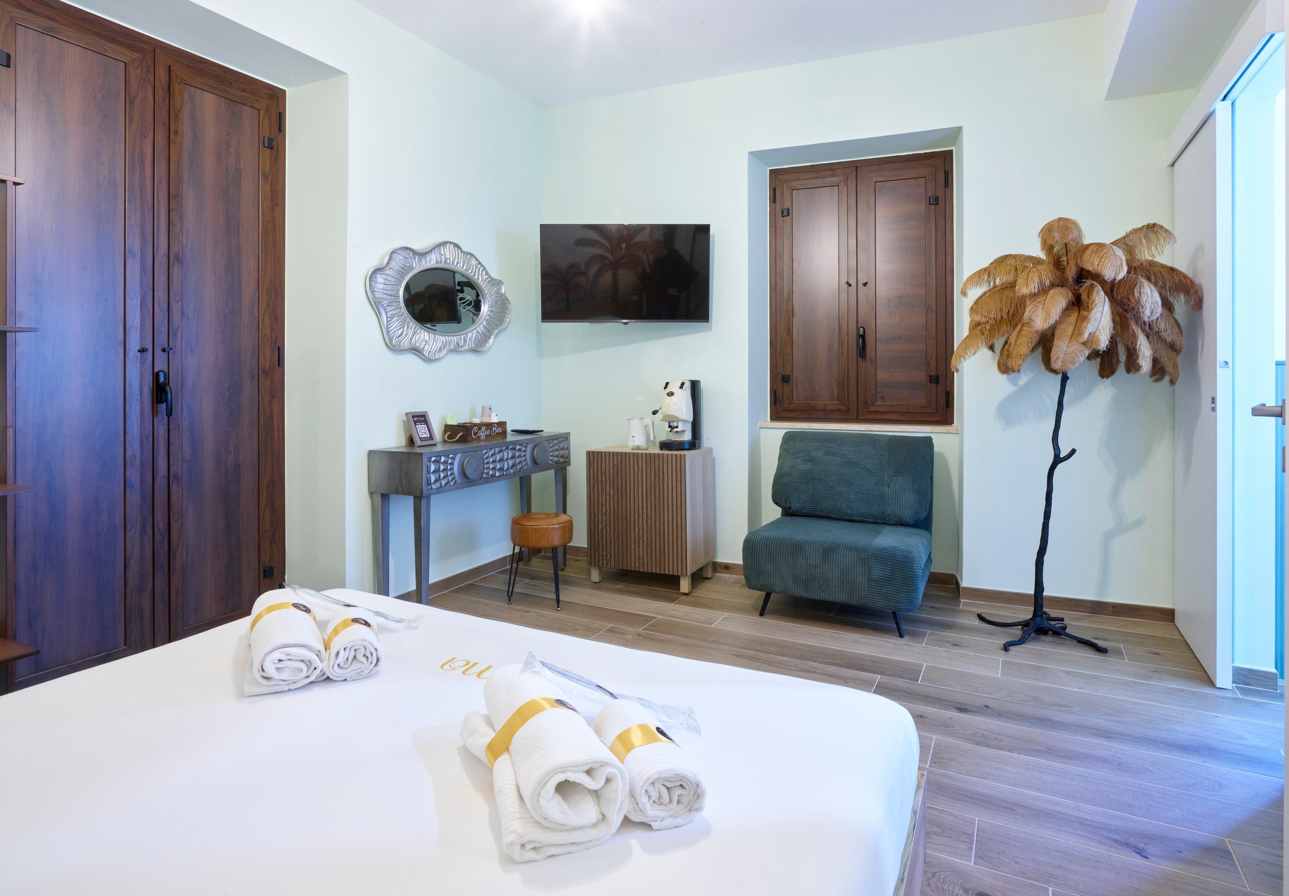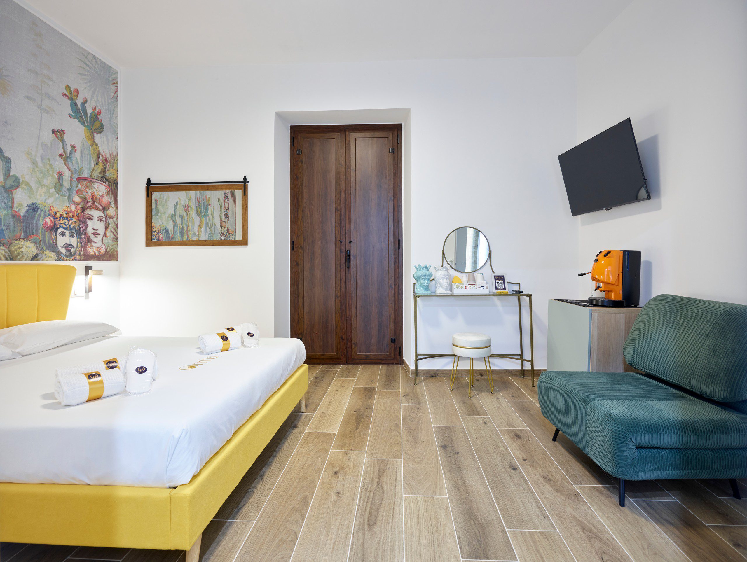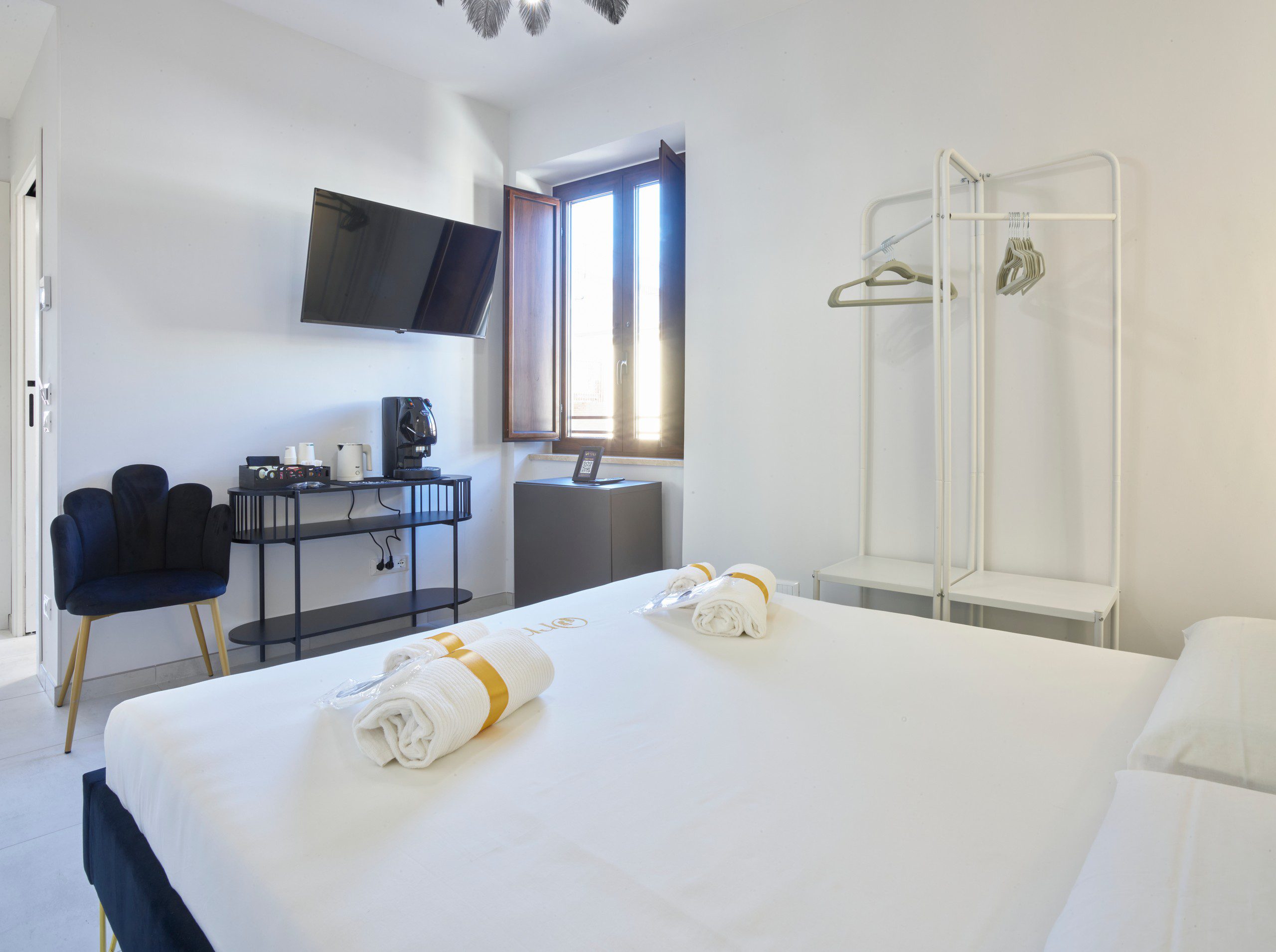 Blue Room è una camera matrimoniale al secondo piano di Orma, dal design moderno ed elegante, con testata azzurro cielo, boiserie in legno e dettagli dorati, nel cuore del centro storico di Fondi. Dispone di bagno in camera con specchio smart, aria condizionata autonoma, minifrigo, macchinetta del caffè e tisaniera, per un soggiorno confortevole e raffinato.