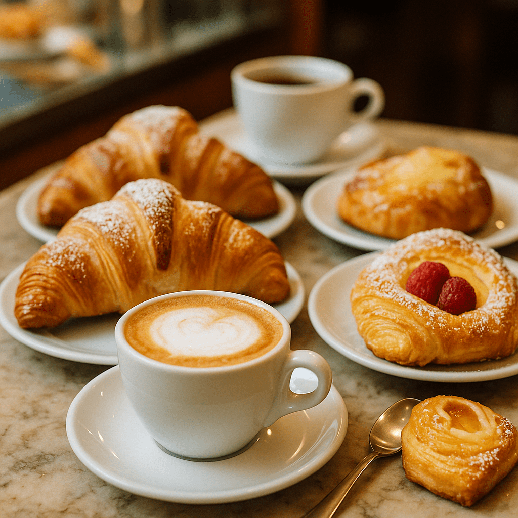 Inizia la giornata con una colazione italiana (caffè/cappuccino e cornetto) da Andrea Orazio, Via Vai o Bella Roma presentando il nostro vaucher.